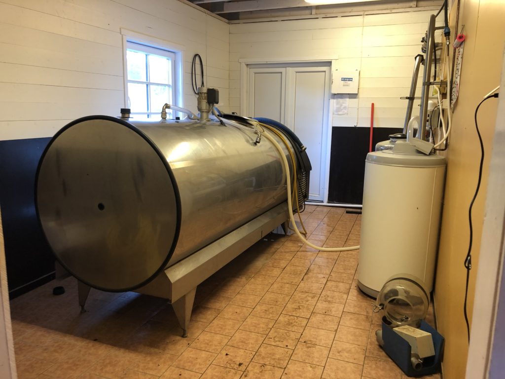 ヤギのミルクはこのような管(くだ)を通って、となりの部屋のバルクにはこばれます。