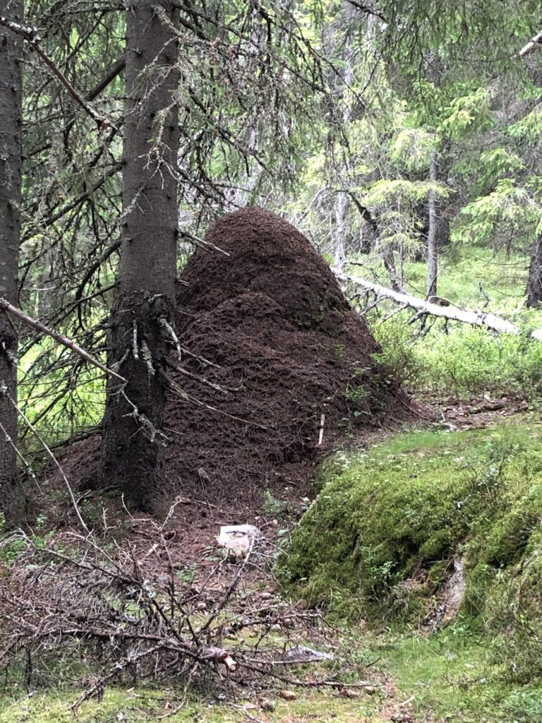 森(もり)の中にきのこをさがしに行きました。これは、fåresoppといって(fåre=ひつじ sopp=きのこ)ひつじきのこという名前のきのこです。きのこの表面(ひょうめん)のもようがひつじのもこもこした毛(け)みたく見えるからそうよばれているそうです。